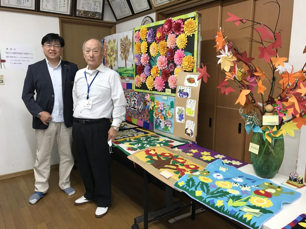 地域の文化祭に、デイサービスから力作を出展! この週末は、デイサービスけやき通りの目の前にある城西ヶ丘公民館にて、文化祭である「秋のフェスティバル」が開催されました。この日に向けてDSけやき通りの利用者の方々は、熱心に作品を製作され、出展。ハワイアンキルトパッチワーク、色紙細工など、一般の方の作品に肩を並べても、決して負けていませんでした。目頭が熱くなりました。この環境を創って下さった区長さんと私で写真を撮ったので、掲載させていただきます!(葉山)